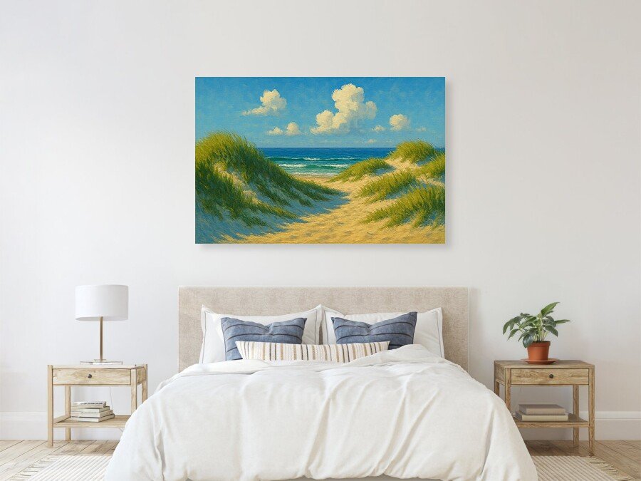 Summer Afternoon ~ AI Painting ~~~ One of the nicest things about living at the beach is getting out of the house and waking across the dunes into the infinite space of the beach. I love the days like this one when the air is calm and the water is clear and the ocean invites me in for a nice warm swim. I don’t think anyone would remain an atheists after a few hours at the beach on an afternoon like this one.