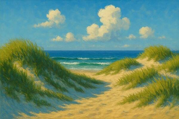 Summer Afternoon ~ AI Painting ~~~ One of the nicest things about living at the beach is getting out of the house and waking across the dunes into the infinite space of the beach. I love the days like this…